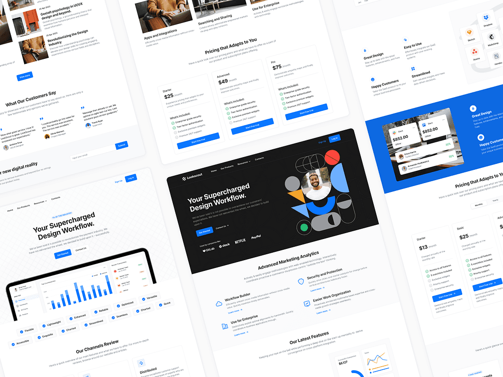 Spend less time on repetitive tasks with hundreds of components, blocks and pre-made pages for websites and landing pages.